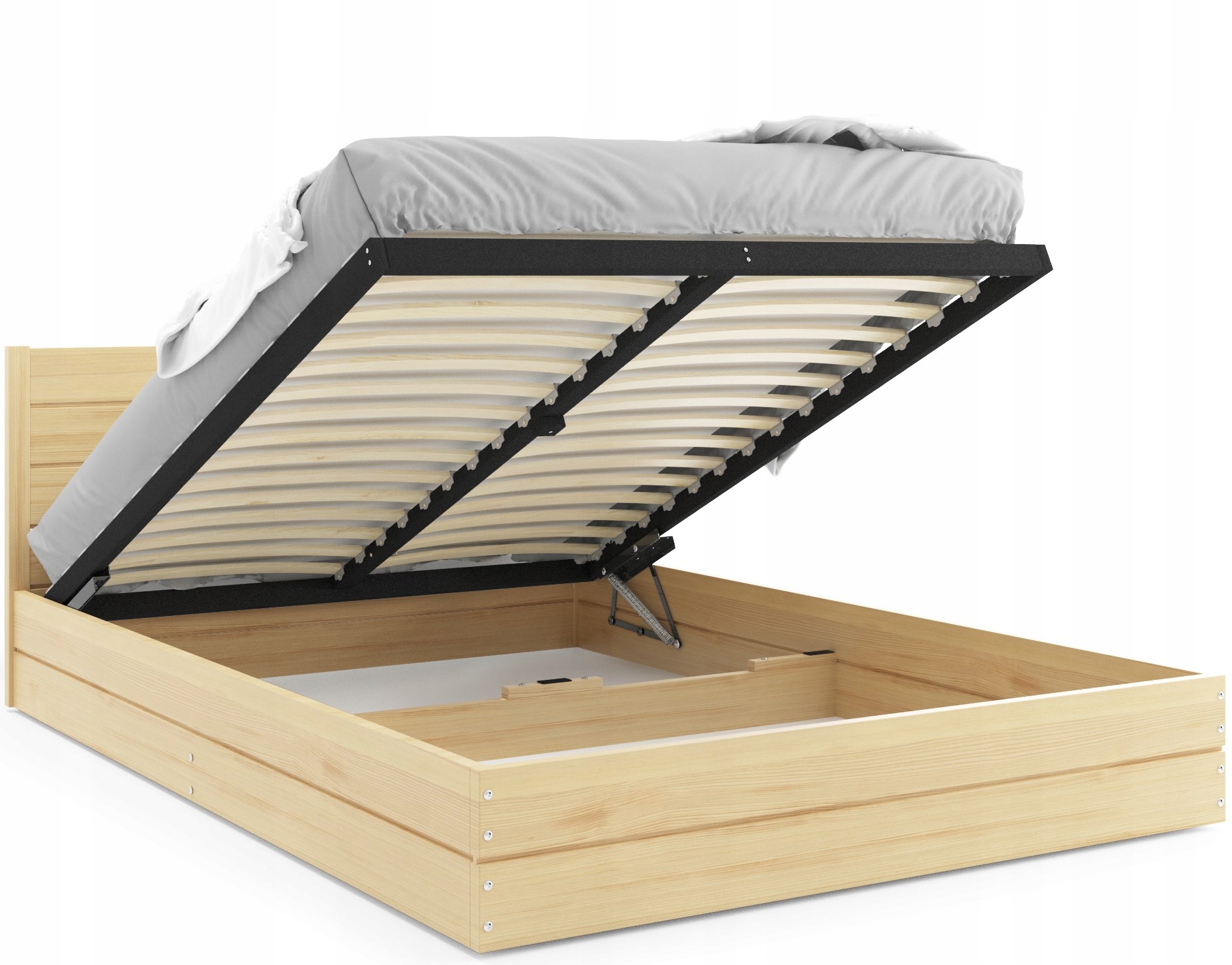 rama łóżka- drewniana akcesoria montażowe wraz z instrukcją stelaż materac- piankowy materac o powierzchni 140x200x8 z pikowanym hypoalergicznym pokrowcem pojemnik, w tylnej części brak spodu dna
