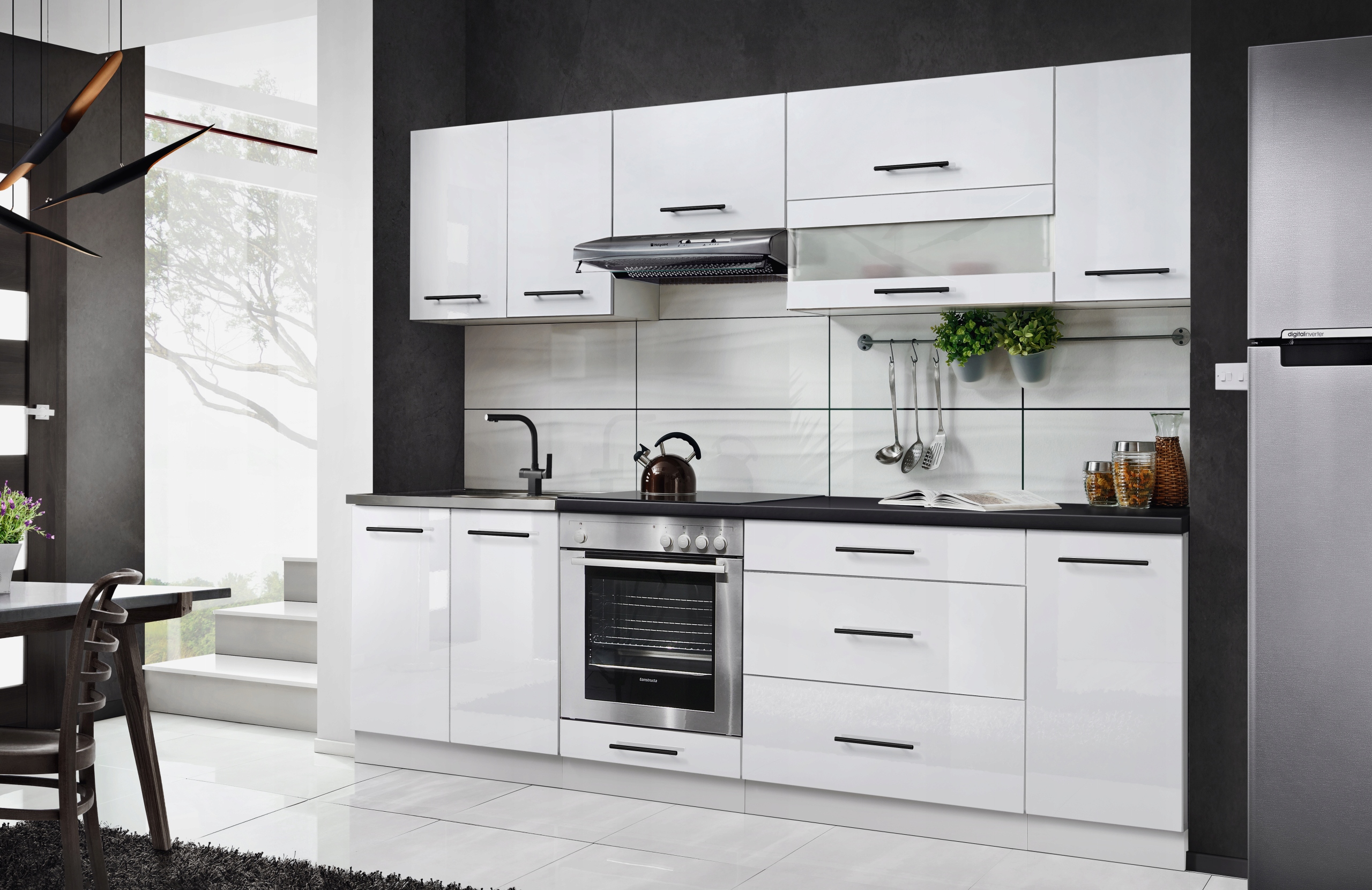 MEBLE KUCHENNE KUCHNIA BIAŁY POŁYSK Z BLATEM ZESTAW SZAFKI 260CM MARCO