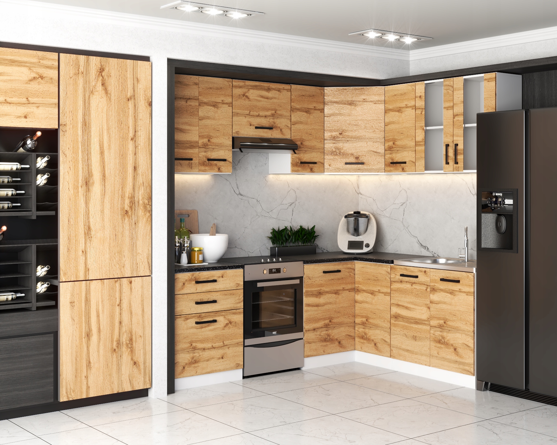 MEBLE KUCHENNE KUCHNIA ZESTAW SZAFKI MODUŁOWE BLAT JOLA NAROŻNA DĄB WOTAN