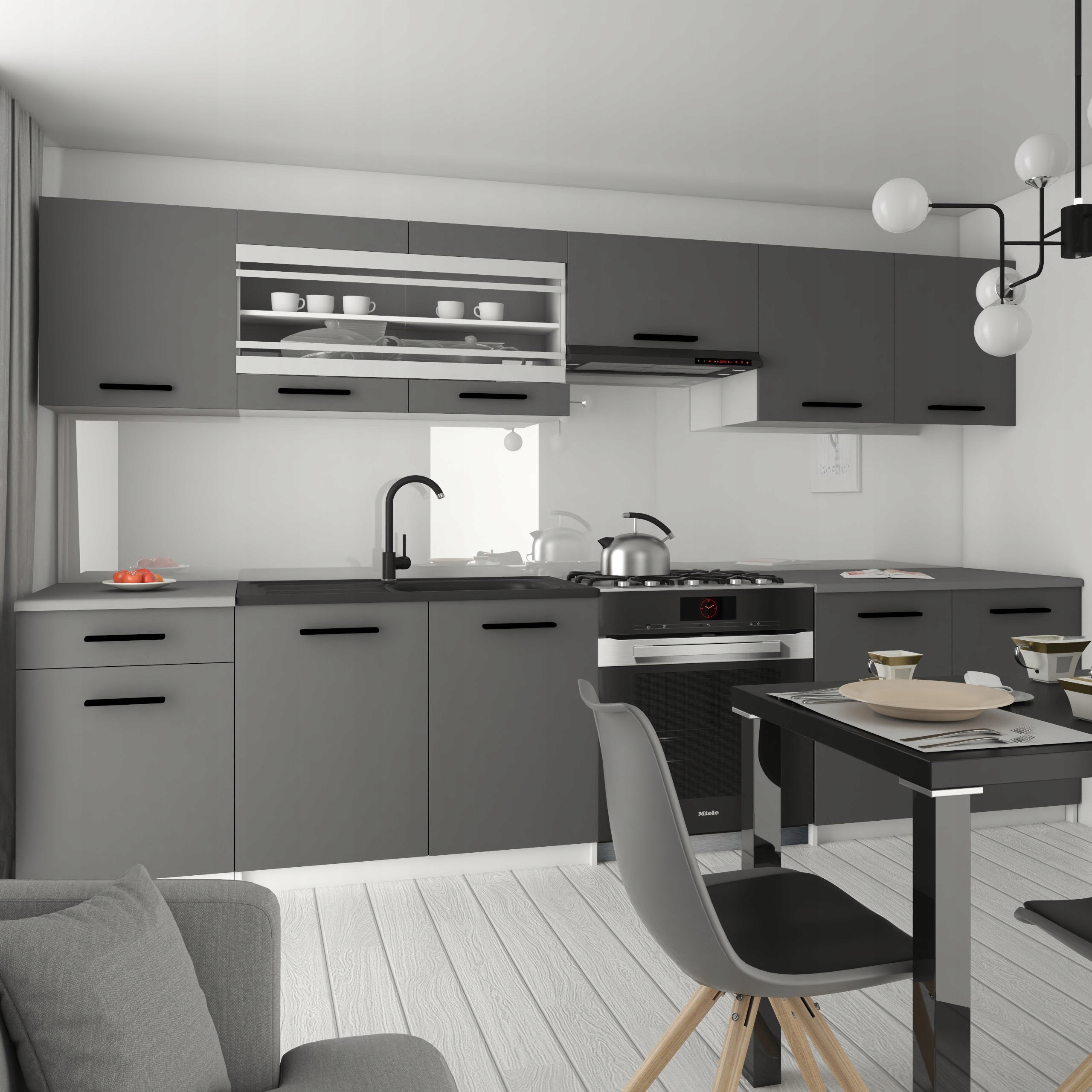 MEBLE KUCHENNE KUCHNIA ZESTAW SZAFKI MODUŁOWE BLAT JOLA 2,6M GRAFIT