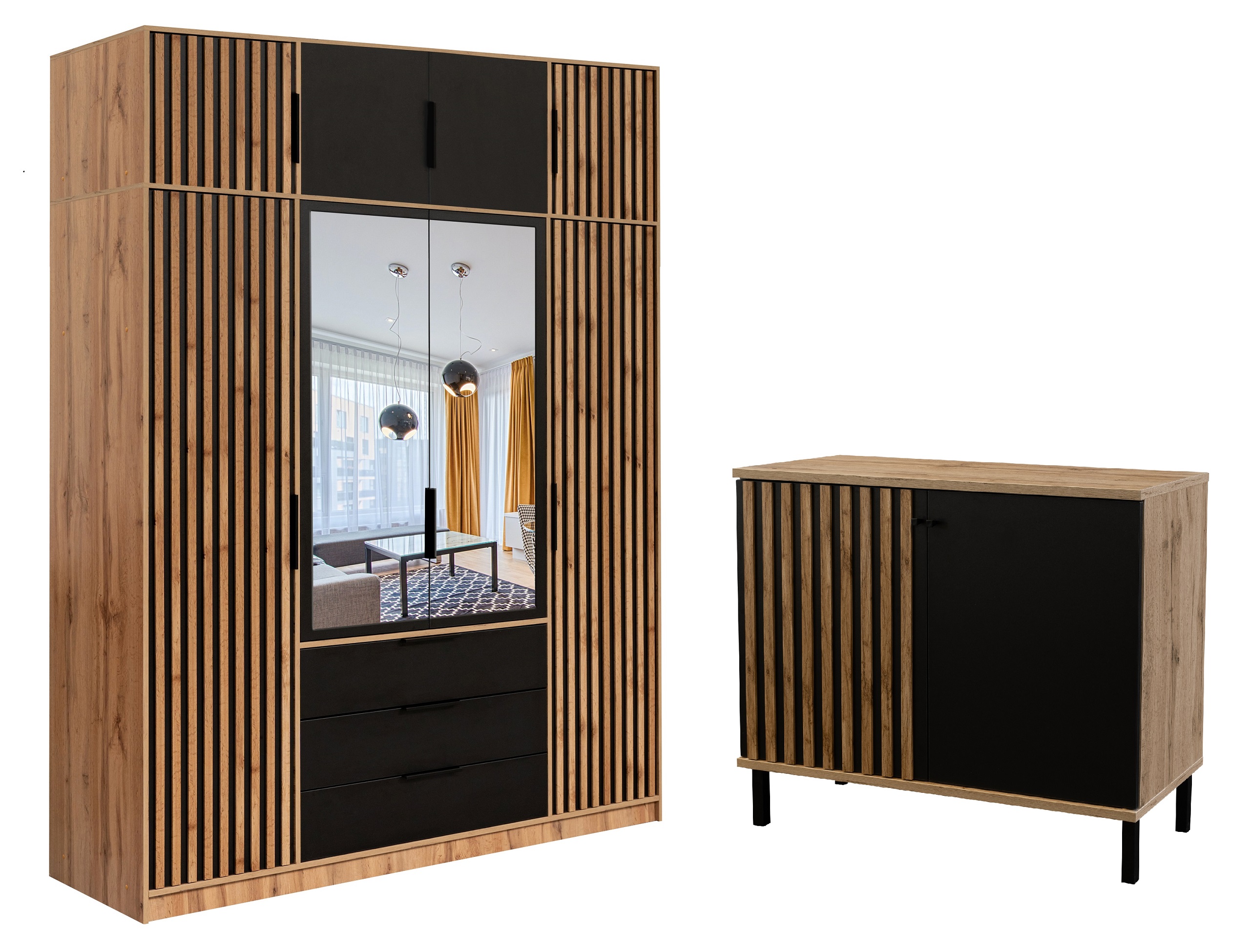 Szafa komoda zestaw komplet mebli z lamelami Bali II D4 lux +komoda London