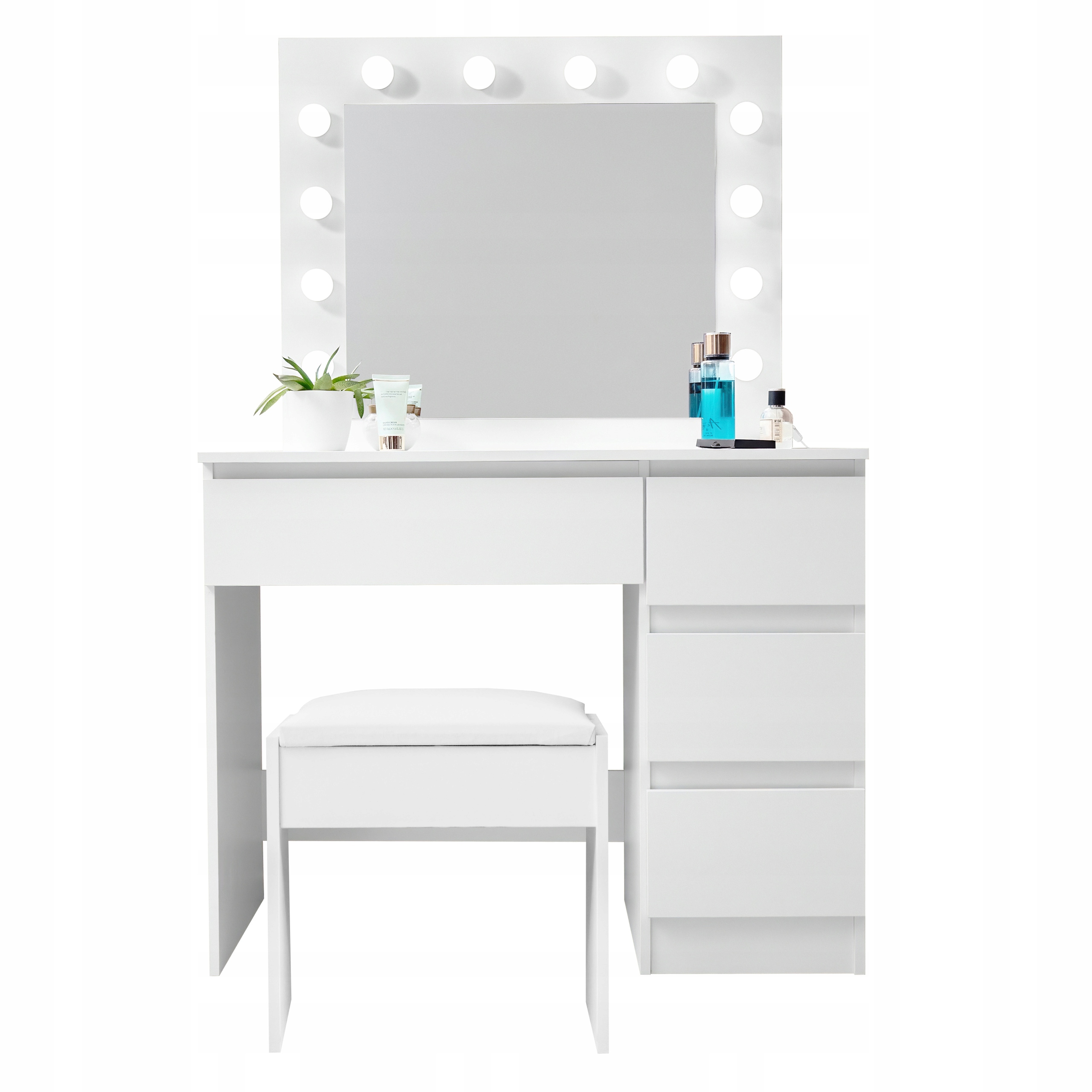 Toaletka z lustrem i oświetleniem + taboret Biały mat