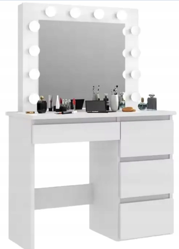 Producent: LUCARO Materiał: Płyta MDF Lustro: żarówki LED Szafka na biżuterie Ilość szuflad: 4 Nowoczesny styl